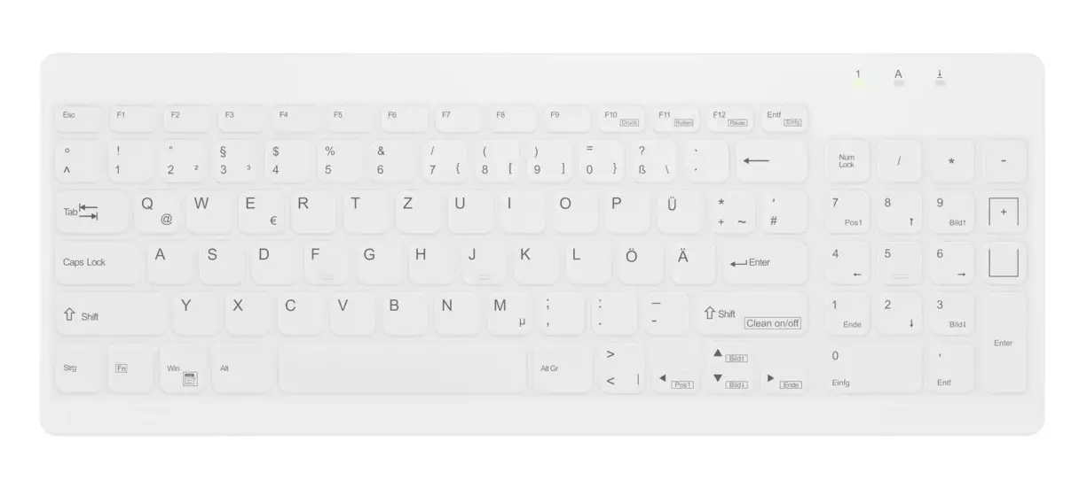 Erittäin litteä näppäinprofiili ja täysin suljettu pinta muodostavat tehokkaan esteen ristikontaminaatiota ja bakteerien leviämistä vastaan. Saumattomalla suljetulla kalvolla varustettu AK-C7012 täyttää suojausluokan IP68 vaatimukset. Vaihtoehtoisesti se on saatavana vaihdettavalla silikonisuojuksella, joka voidaan steriloida autoklaavissa. ”CleanFunction”-toiminnolla näppäimistö voidaan kytkeä pois päältä puhdistuksen ajaksi (”FN” + ”Clean on/off”).