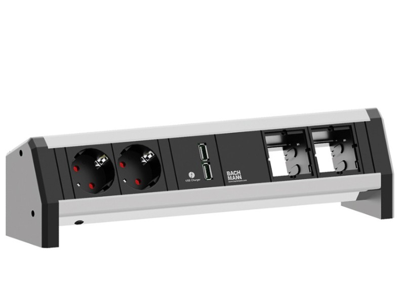 Bachmann Desk 2xSchuko, 1xUSB Charger & 2xEmpty Power strip - ALU - w/Child protection