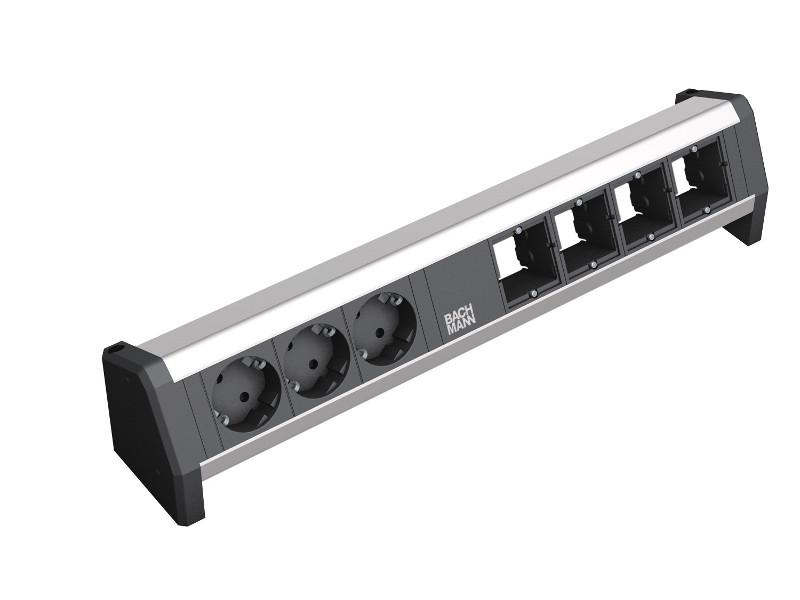 Bachmann DESK 3xSchuko & 4xModule GST18 Power strip w/Child protection - ALU