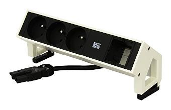 Bachmann DESK2 - 3xUTE/French & 1xEmpty Power strip - ALU - L: 197mm w/Child protection - White painted RAL 9010 - incl. Mounted holding flanges