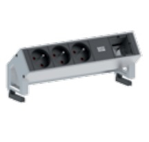 Bachmann DESK2 - 3xUTE/French & 1xEmpty Power strip - ALU - L: 197mm w/Child protection - Inox (MAS0802000) - incl. Holding flanges