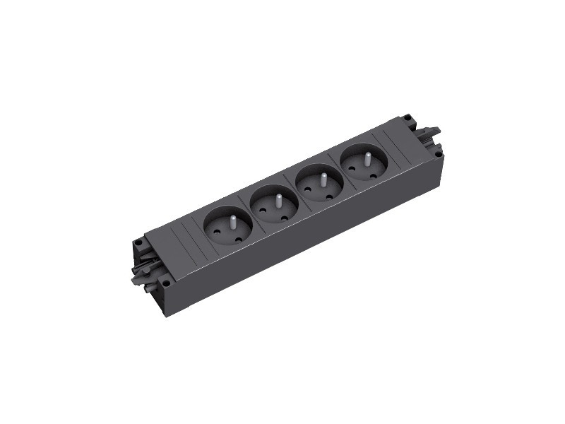 Bachmann STEP BASE - 4xUTE GST18 Power strip - Length: 262,5mm w/PVC - body, UTE/French sockets - Black