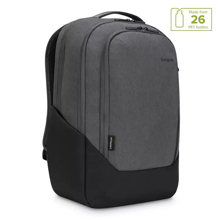 Targus Cypress Hero with EcoSmart -tietokonereppu on tyylikäs kuljetusväline korkeintaan 15,6" läppärille ja muille päivän aikana tarvitsemillesi tarvikkeille. Repussa on tilava päälokero, oma pehmustettu osasto enintään 15,6" läppärille ja organisoitu etutasku pientarvikkeille. Repussa on myös remmi lentolaukkuun kiinnittämiseen, kantokahva ja tuuletusta ajatellen muotoiltu takaosa säädettävillä olkahihnoilla. Tuote on valmistettu kierrätetyistä muovipulloista saadusta PET-polyesterikuidusta. Kapasiteetti: 20 litraa. Repun mitat: 30,5 x 13,5 x 50 cm, paino 1,05 kg Läppärilokeron mitat: 38,7 x 2,5 x 26,5 cm Tuotteella on rajoitettu elinikäinen takuu.