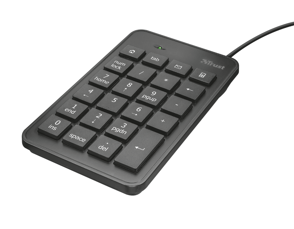 Tyylikäs ja ohut numeronäppäimistö, jonka avulla voi helposti syöttää numeerisia tietoja mihin tahansa Windows-kannettavaan Key features: - Lisää kätevä numeronäppäimistö kannettavaan tietokoneeseen tai pienikokoiseen näppäimistöön - 5 ylimääräistä näppäintä (selaimen kotisivu, välilehti, posti, välilyönti ja laskin) - Kalteva muotoilu ja 23 täysikokoista, matalaprofiilista näppäintä - Miellyttävä, tarkka ja nopea kirjoitus - Helppokäyttöinen: kytke ja käytä - Sopii oikea- ja vasenkätisille - 1,5 m:n johto