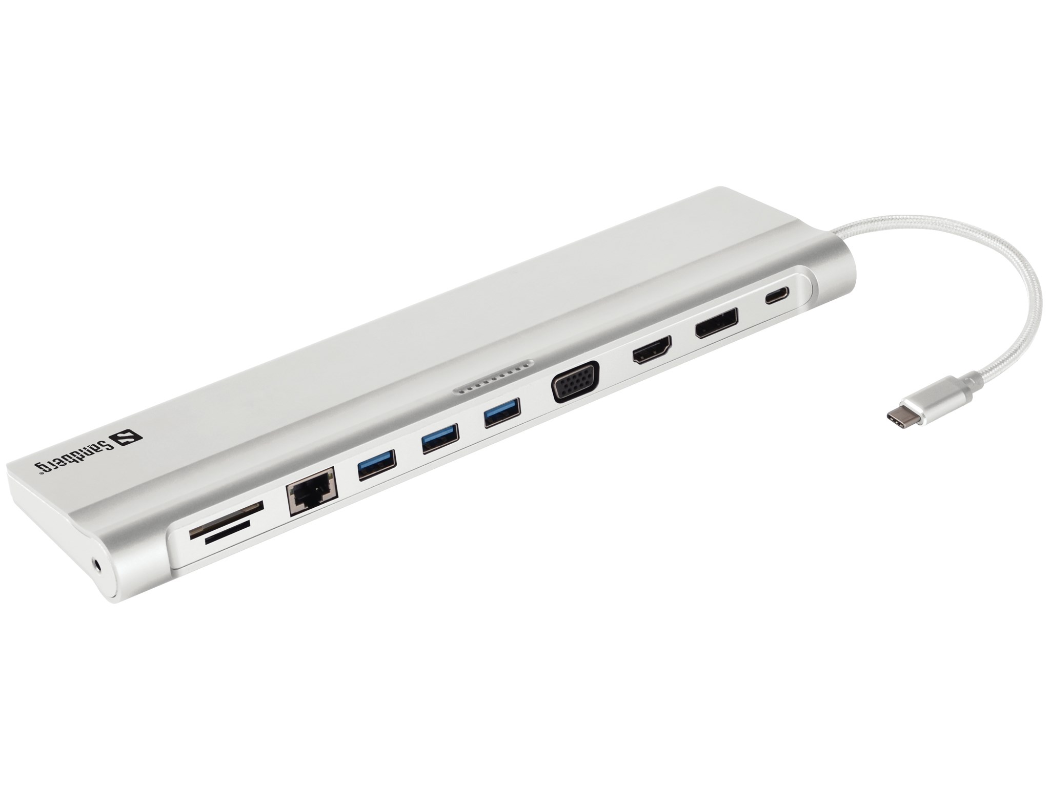 Sandberg USB-C All-in-1 Docking Station antaa kannettavalle tietokoneellesi mahdollisuuden muodostaa yhteyden kaikkiin laitteisiisi vain yhdellä liitännällä: