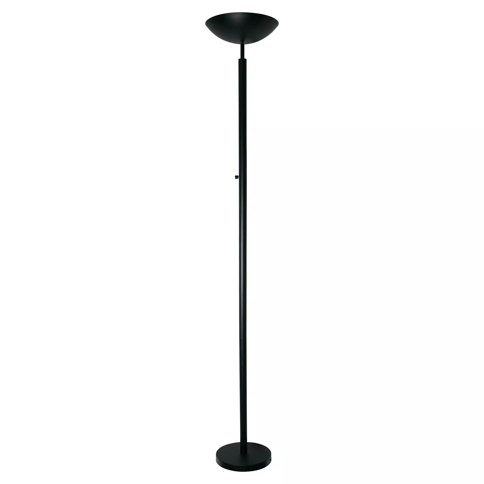 Kaksiportainen kytkin on sijoitettu rungon keskiosaan, joten valaisimen käyttö on helppoa ja ergonomista. Painotettu jalusta takaa vakauden, ja kokonaisuudessaan 185 cm korkea rakenne sopii hyvin osaksi korkeampia huonetiloja. Mustan väri viimeistelee lattiavalaisimien pelkistetyn mutta vaikuttavan ulkoasun.