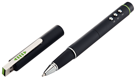 Kaikki tarvittavat toiminnot ovat pakattu tyylikkääseen laserosoittimen, kuulakärkikynän ja stylus-kynän yhdistelmään.