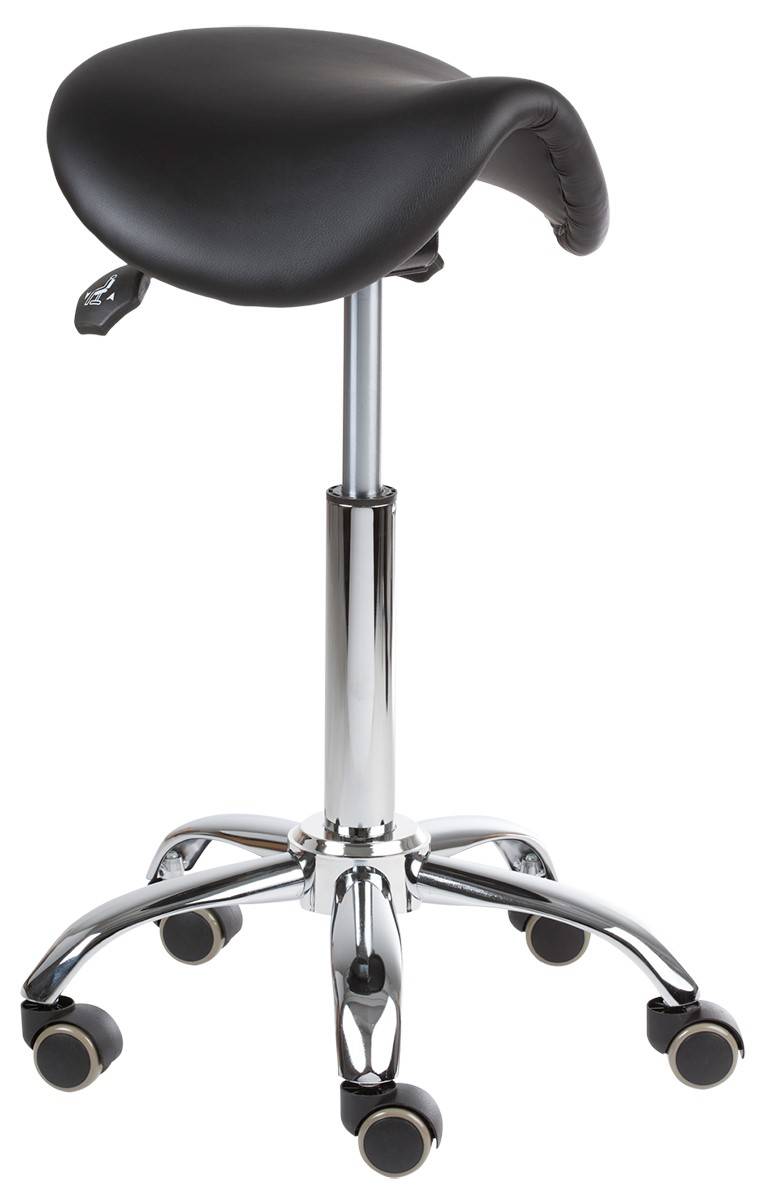 Vakiona normaalia korkeampi kaasujousi Jalkaristikon halkaisija: 460 mm Istuinkorkeus: 560 - 760 mm Istuimen leveys: 400 mm Istuimen syvyys: 360 mm Paino: 6 kg Verhoilu: musta ECO Leather keinonahka Runko: kromi