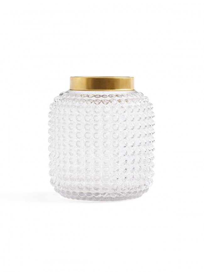 Kaunis lasimaljakko/lasilyhty ajattomalla kuplakuviolla ja sievällä messinkiyksityiskohdalla. Sopii yhtä hyvin niin kukkakimpulle kuin kauniille pöytäkynttilälle.