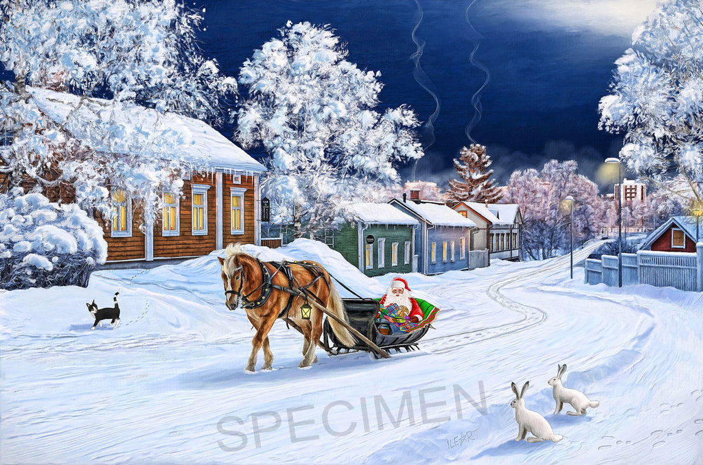 Oulun tunnetuimpiin maisemiin sijoittuvat joulukortit ovat värikkäitä, sekä vanhan ajan joulun tyyliin kuvitettuja. Kuvittaja on Ilkka Kylmäkorpi (Ileart).