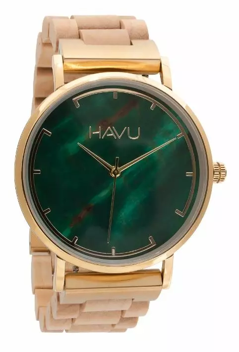 Kellotaulun ja rannekkeen lisäksi rannetta vasten nojaava tausta on puuta, jonka ansiosta kello tuntuu pehmeältä ja kevyeltä iholla. Valitsimme rannekelloon ensiluokkaiset materiaalit. Koivu on kova puumateriaali, joka soveltuu erinomaisesti kellon puuosien materiaaliksi. Lisäksi se on kuvioltaan kaunis, joten se sopii kelloon erinomaisesti.