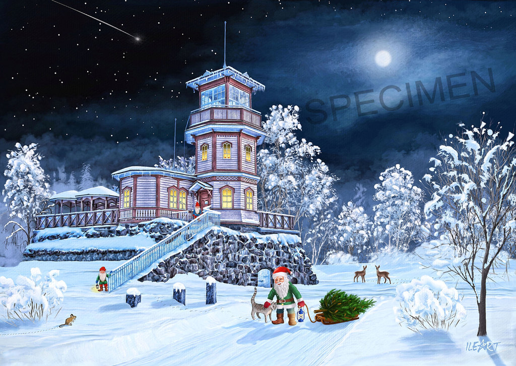 Tähtitorni joulukortti A6 kokoiset joulukortit ovat edullisia, sekä laadukkaita. Kortit ovat kuvituksesta lähtien suomalaista työtä. Painotyöstä vastaa Karkkilan Painopalvelu Oy, yli 30 vuoden kokemuksella.