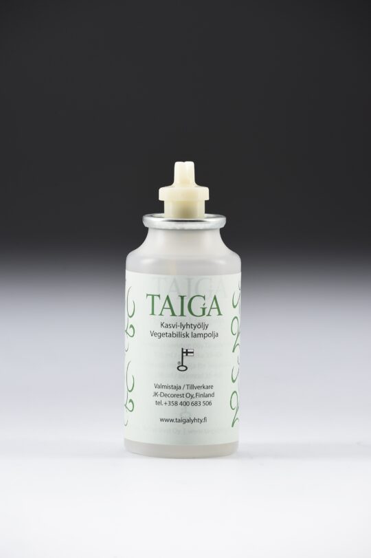 Taigalyhdyn puhdas kasviöljy luo liekin joka ei savua eikä nokea ympäristöään. Yhdellä säiliöllä Taigalyhty palaa noin 35-40 tuntia. Sopii kaikkiin Taigalyhtyihin.