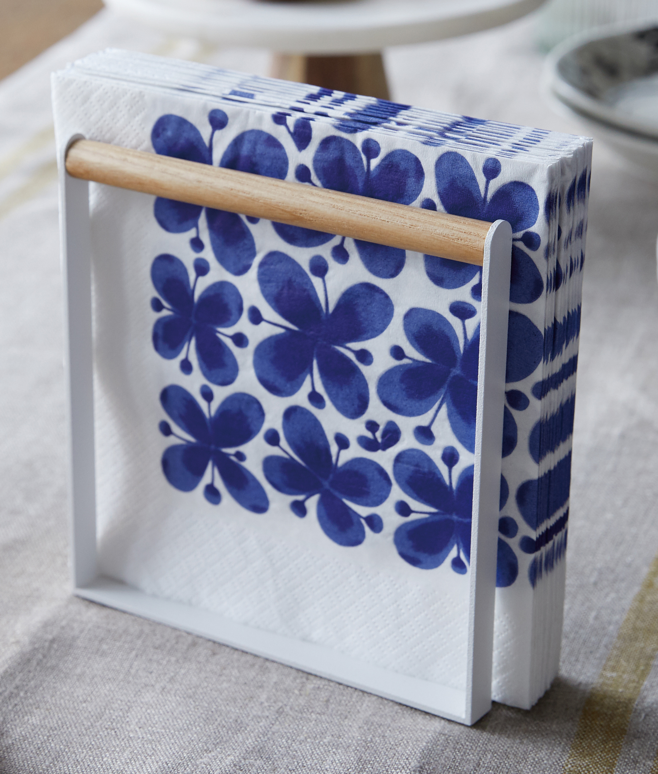 Yksinkertainen Tosca-lautasliinateline näyttää tyylikkäältä monenlaisessa kattauksessa aina juhlavasta kahvipöydästä rentoon sunnuntaibrunssiin. Avoin malli jättää kauniit lautasliinat näkyviin. Suunniteltu Japanissa.
