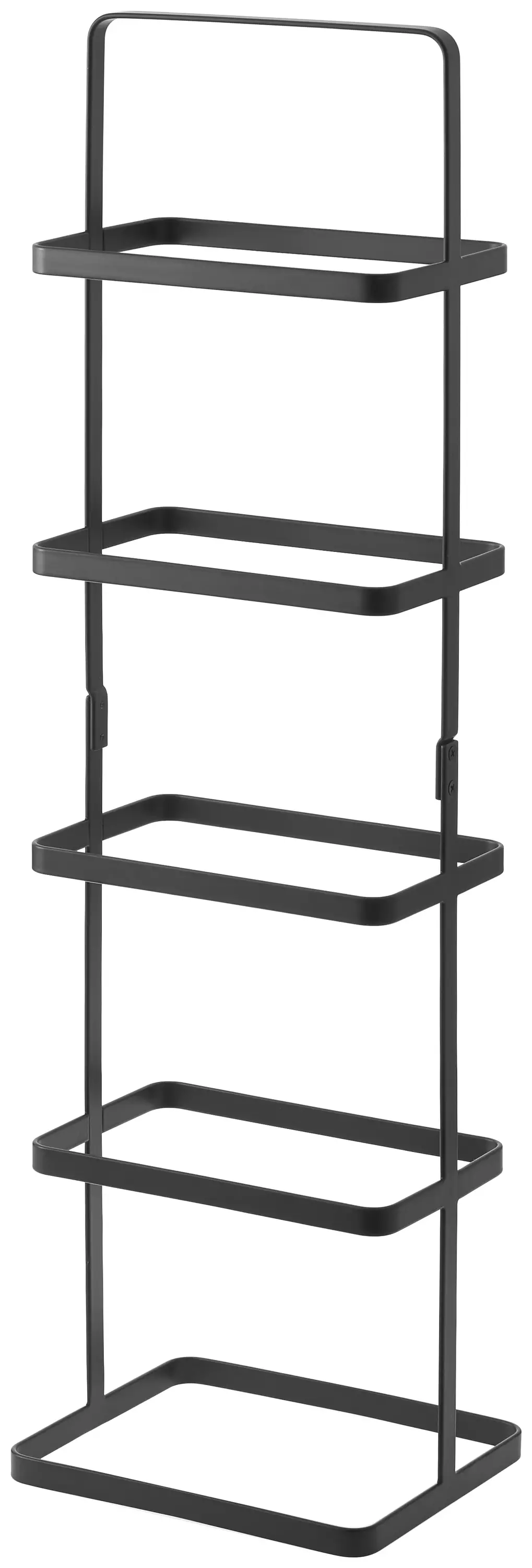Tower-sarjan korkea ja kapea kenkäteline löytää paikkansa kaikkein pienimmästäkin eteisestä ja sen minimalistinen ulkonäkö sopii monenlaiseen sisustustyyliin. Päällä olevan kädensijan ansiosta telinettä on helppo siirrellä esimerkiksi imuroitaessa. Jauhemaalattu teräs on helppo pitää puhtaana kostealla liinalla pyyhkimällä. Telineessä on tilaa viidelle kenkäparille. Suunniteltu Japanissa.