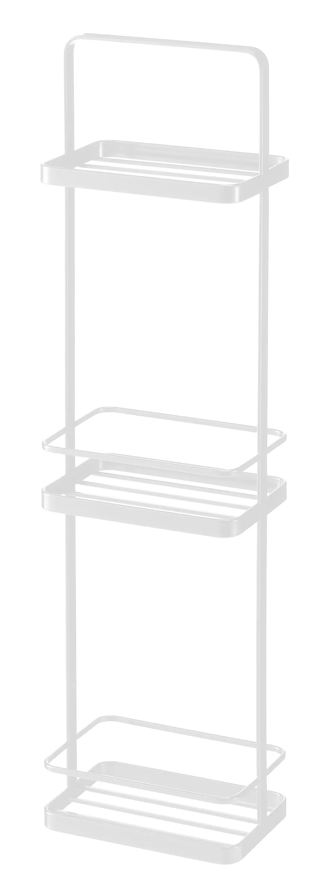 Tower-sarjan teräksisessä kylpyhuoneen hyllyssä sampoot, hoitoaineet ja suihkusaippuat pysyvät ojennuksessa ja pesusienet ja -harjat puolestaan pääsevät kuivumaan ilmavasti. Sirorakenteisena hylly ei vie paljoakaan tilaa pienessäkään suihkutilassa ja korkeutensa puolesta se sopii erinomaisesti myös kylpyammeen viereen. Valmistettu Unichrome-käsitellystä jauhemaalatusta teräksestä, joka kestää kosteutta. Suunniteltu Japanissa.