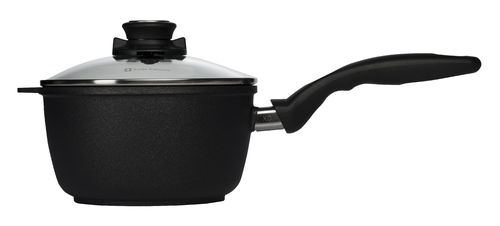2 L kasari tasaisesti ja tehokkaasti lämpenevällä, paksulla valualumiinirungolla sekä erittäin kestävällä ja lämpöä johtavalla XD-timanttipinnoitteella. Halkaisija 18 cm, reunan korkeus sisäpuolelta mitattuna 10 cm. Soveltuu myös induktioliedelle. Hintaan sisältyy säädettävillä höyryraukoilla varustettu lasikansi.