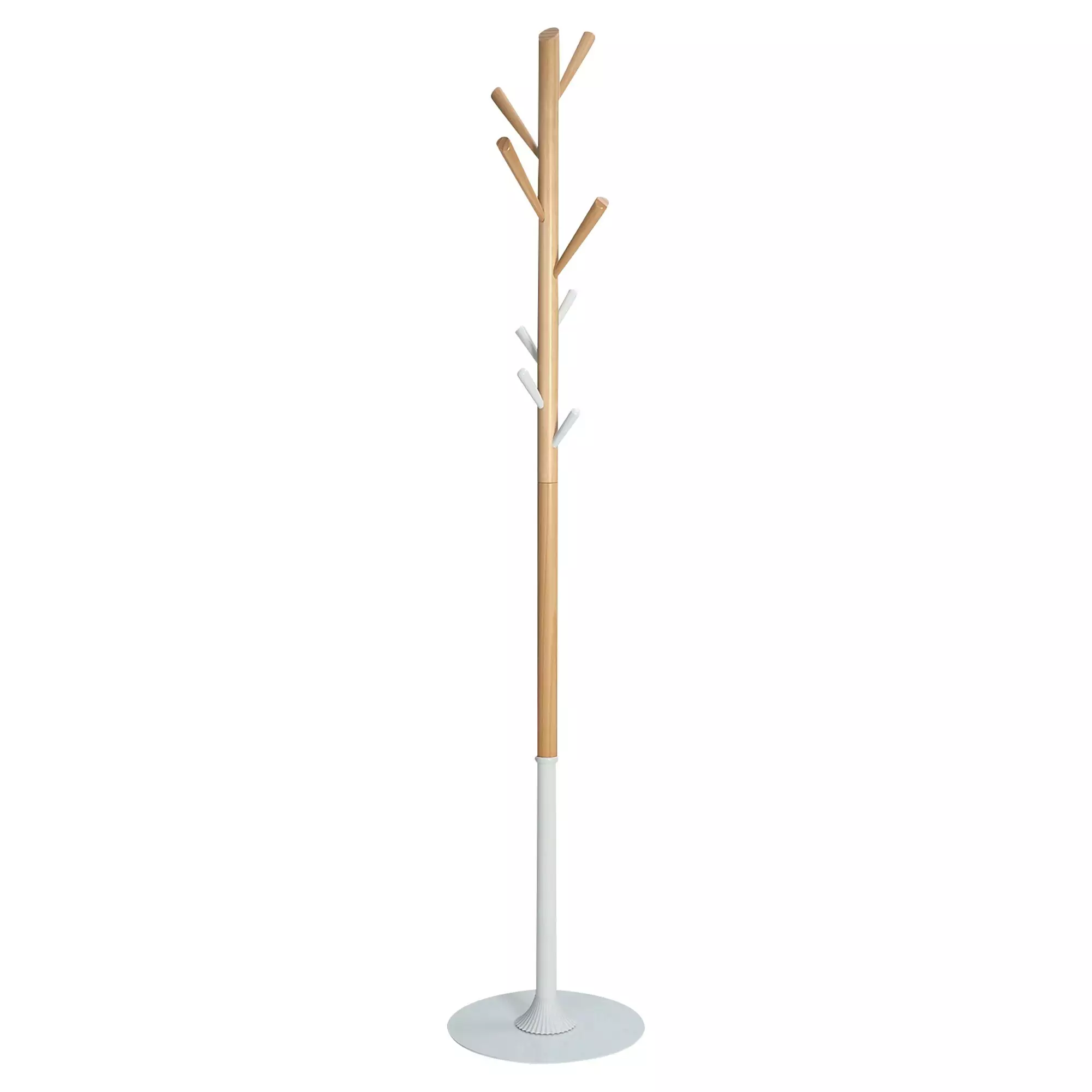 Vaateripustin luonnollisella designilla. 100 % FSC-puuta. Luonnollinen ja puhdas design. 8 puista koukkua täydelliseen pitoon ja vaatteiden kunnioittamiseen. Painava pohja optimaalisen vakauden takaamiseksi (3 kg). Nopea ja helppo koota ilman työkaluja. 100 % kierrätettävä.