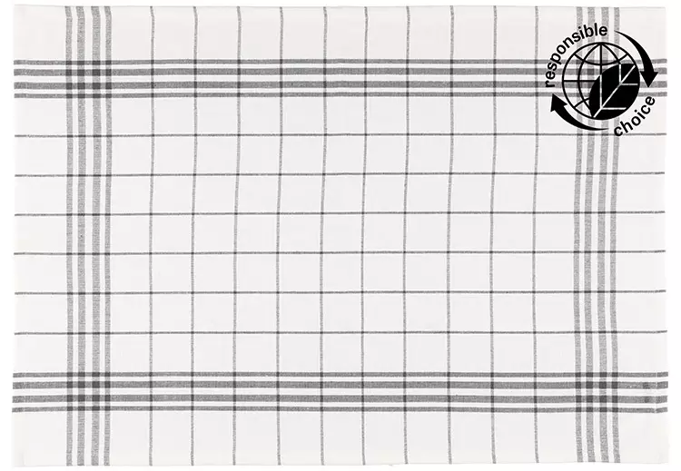 Perinteinen kudottu ruudullinen keittiöpyyhe. Materiaalista 75 % on kierrätettyä puuvillaa. Koko 50 x 70 cm. Väri valkoinen/harmaa. Pakkauksessa 2 kpl.