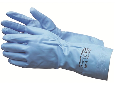Muovinen (PVC) suojakäsine, jossa on nukattu sisäpinta ja karhennettu kämmenkuviointi. Käsine on hyväksytty myös elintarviketeollisuuteen ja se ei sisällä lateksia eikä ftalaatteja eli soveltuu myös luonnonkumille herkistyneille Standardi EN374/388/2000, CE 0121n kategoria III.