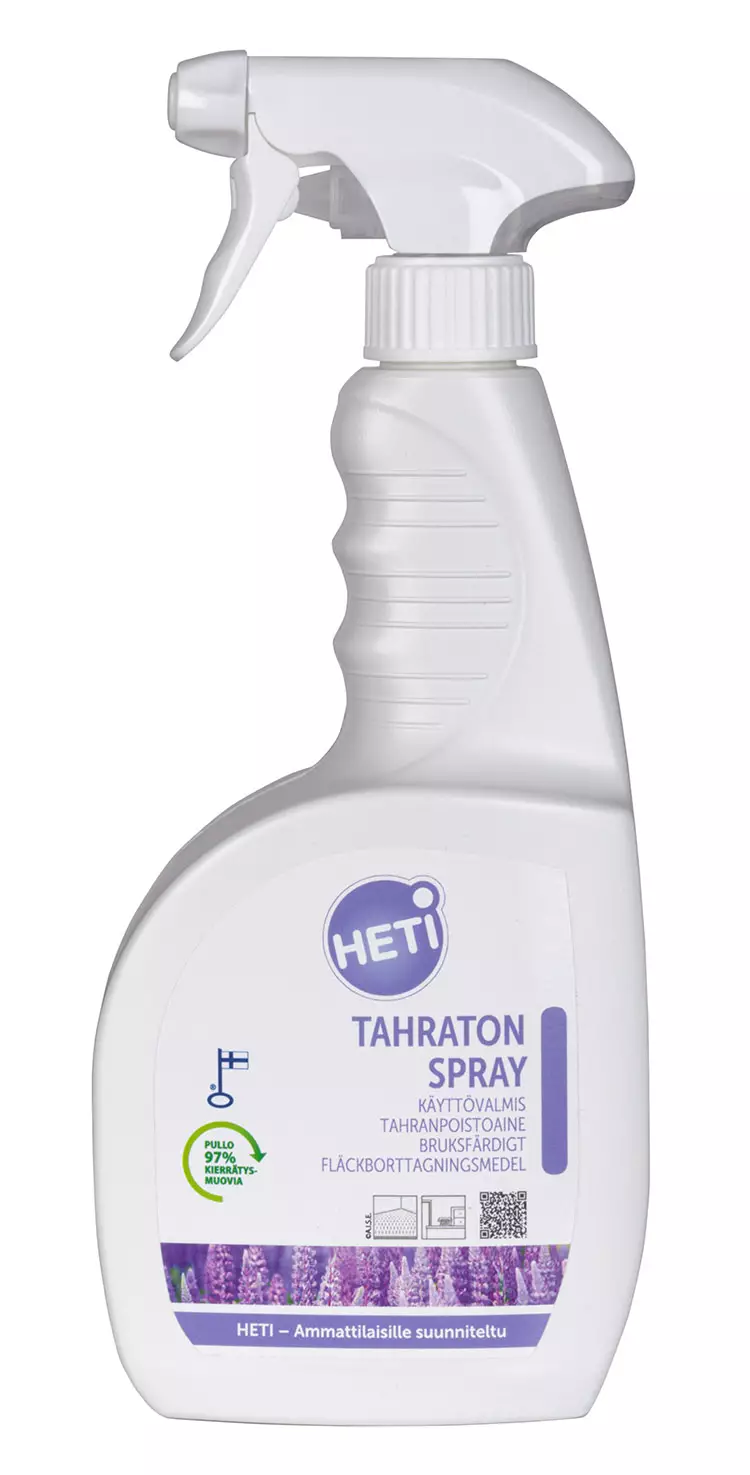 käyttövalmis tahranpoistoaine soveltuu käytettäväksi tekstiileille ja koville pinnoille. 97% kierrätysmateriaalista tehty pullo. Korkeus:25,3cm. Nettopaino: 0,753 kg.
