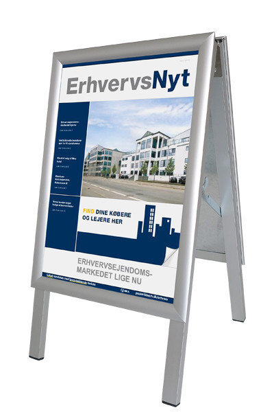 Tyylikäs A-teline / mainosteline snap-kehyksillä. Taulussa käytännölliset kääntökehykset, joihin voit helposti vaihtaa mainokset muutamassa sekunnissa. Käännä kehysten reunat, irrota suojamuovi ja aseta mainokset kehyksiin. Kiiltämätön PVC suojamuovi suojaa julisteet pölyltä ja lialta. Tyylikkäät 25 mm alumiinikehykset. Terästausta tekee kehyksistä vakaan mainoksen.