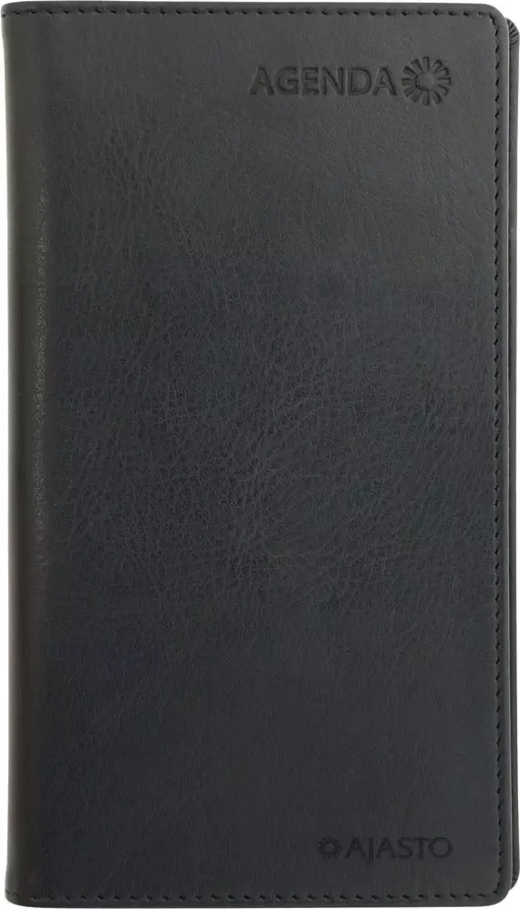 Ajasto Agenda 2026 taskukalenteri on todellinen klassikko. Kalenterissa on tyylikkäät mustat keinonahkakannet. Se kulkee helposti mukana, on kooltaan juuri sopiva ja toimii erinomaisesti päivittäisessä käytössä.