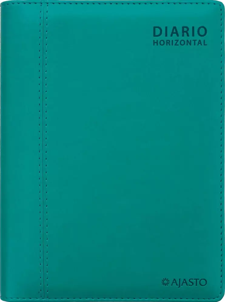 Ajasto Diario Horizontal on keskikoinen pöytäkalenteri, joka kulkee helposti myös mukana. Diario Horizontal -pöytäkalenterissa aukema näyttää kerrallaan viikon ja päivät ovat aukeamalla omana sarakkeena allekkain. Horisontaalisesti jokaiselle päivälle jää runsaasti vapaata tilaa omille merkinnöille. Tämä sopii hyvin esimerkiksi lauseille tai muille pidemmille päiväkohtaisille muistiinpanoille. Diario Horizontal on päällystetty tyylikkäisiin petroolin väriin keinonahkakansiin. Kierresidonta tekee kalenterin käyttämisestä miellyttävää.