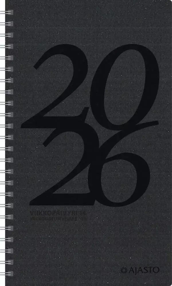 Ajasto Viikkopäivyri 14 Eko 2026 pöytäkalenteri musta 120 x 210mm
