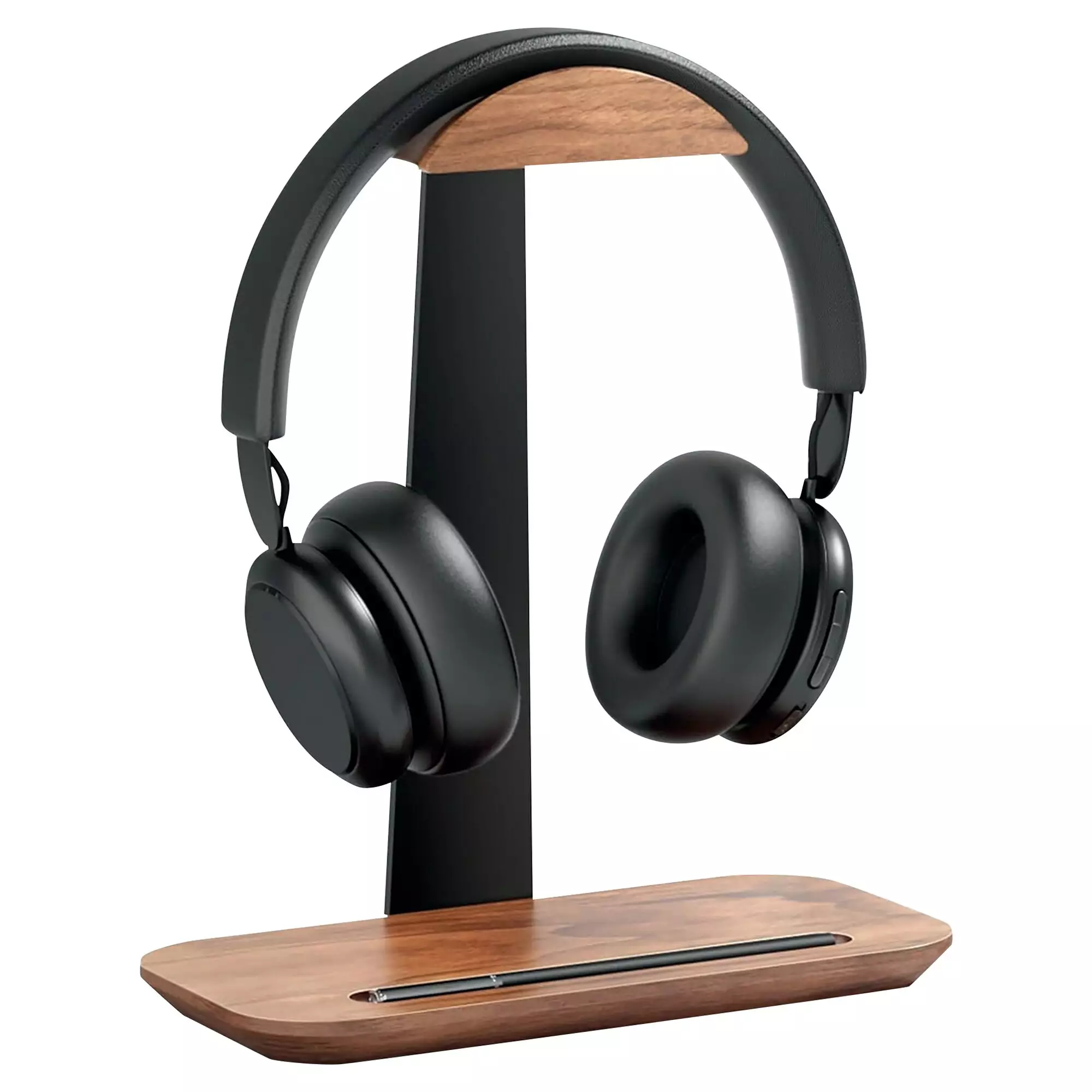 Pähkinäpuuta ja mustaa alumiinia. 100% kierrätettävä. Tukeva muotoilu.