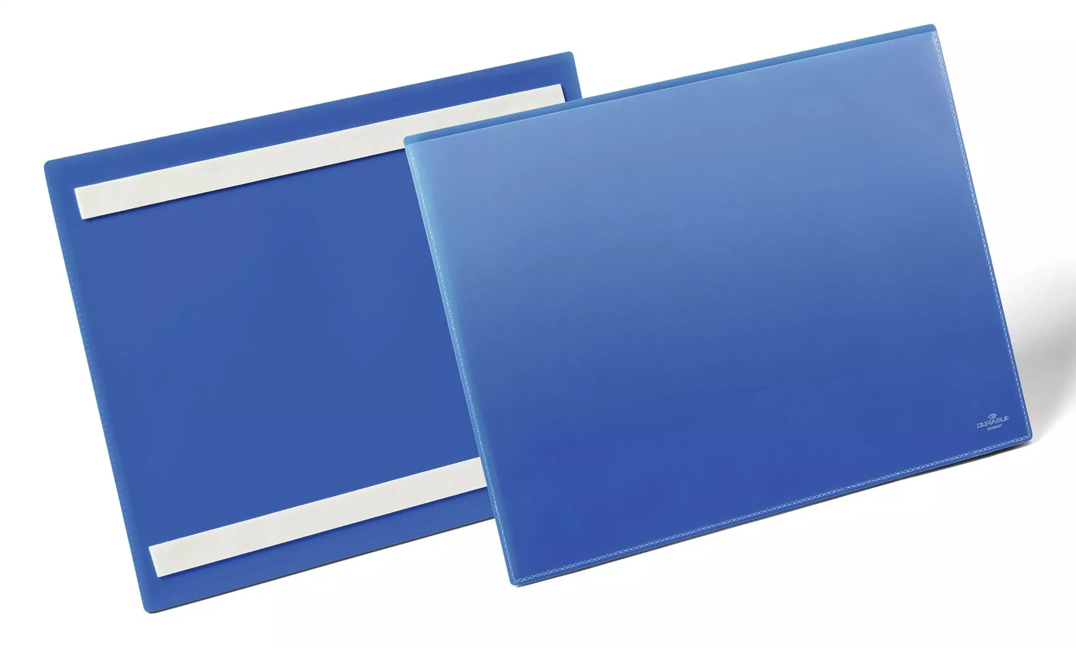 A4-vaakasuora asiakirjatasku, jossa kaksi pysyvää teippiä takana. Käytä muovisäiliöissä, puu- ja pahvilaatikoissa. Sininen takakalvo ja läpinäkyvä etukalvo, valmistettu kestävästä polypropeenista. Sopii skannereille ja on pysyvästi säilytettävä. Lisäosat voidaan vaihtaa nopeasti. Sisämitat: A4 vaakasuora / 297 x 210 mm (L x K).