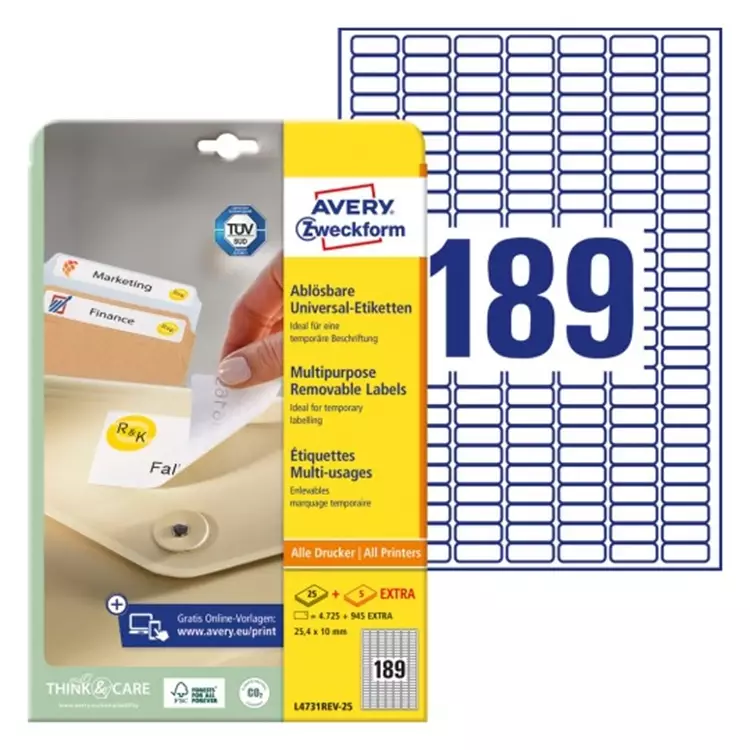 AVERY L4731REV-25 TARRA 25,4X10MM IRTOAVA LIIMA