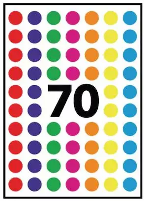 Yksittäisen tarran koko on 8 mm. Pysyvän liimapohjan ansiosta tuotteet pysyvät tiukasti kiinni. Ne on valmistettu korkealuokkaisesta paperista, joka mahdollistaa helpon kirjoittamisen ja tulostamisen useissa eri sovelluksissa. Kussakin on 6 arkkia, joista niistä jokaisessa arkissa on 70 tarraa.