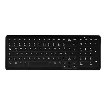 Kompakti näppäimstön koko numeronäppäimistöllä Hyväksytty kliiniseen desinfiointipyyhkimiseen VAH-listan (Saksan sovelletun hygienian yhdistys) mukaan. Kestävä silikonikuori, jossa kulutusta kestävä merkintä Maksimaalinen kirjoitusmukavuus saksitekniikan ansiosta Lyhyen näppäimen liike ja kiinteä kosketuspalaute Puhdistustoiminto: näppäimet ovat pois päältä puhdistuksen aikana 2,4 GHz langaton yhteys