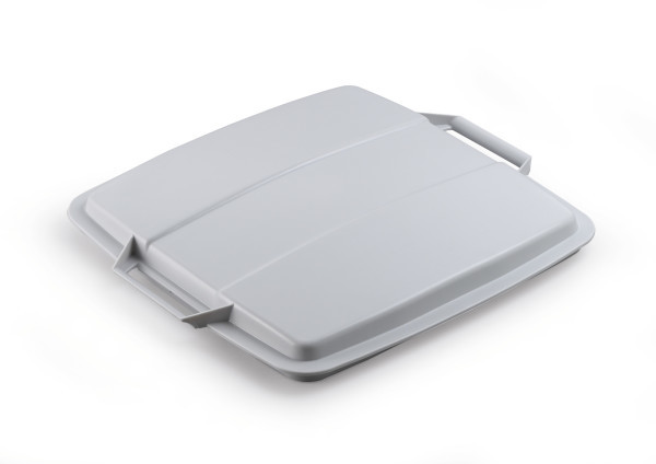 Kansi DURABIN 90 litran roska-astialle. Kahvoilla helppo kuljettaa. Ruokavalmis kaikissa väreissä (EU-asetuksen nro 1935/2004 / EY mukaan), mustaa väriä lukuun ottamatta. Mitat: 507 x 470 x 60 mm (L x K x P)