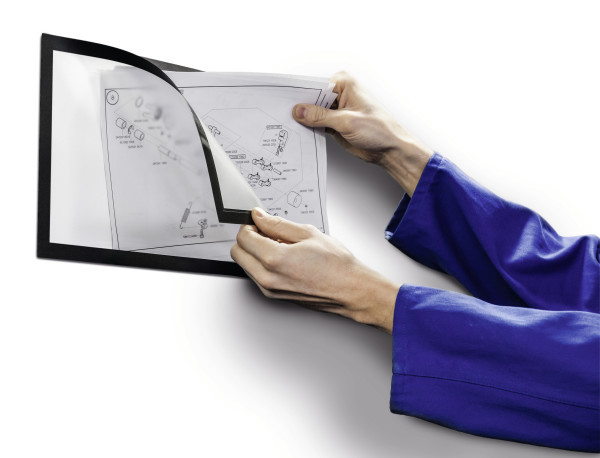Ammattimainen tapa näyttää tietoja. DURAFRAME ® MAGNETIC PLUS -magneettinen tietokehys on täydellinen ratkaisu asiakirjojen suojaamiseen kosteassa ja pölyisessä ympäristössä. • Näyttää tiedot ammattimaisella ja tyylikkäällä tavalla • Aseta ja vaihda viestit nopeasti avattavan magneettikehyksen ansiosta. • Helppo asentaa metallipinnoille, kuten taululevyille, kaappeille ja metalliseinille. • Asiakirja on suojattu kosteudelta ja pölyltä kahden muovilevyn välissä. Hyvä teetä x -tuotannossa, keittiössä ja saniteettiympäristöissä. • Alemman muovilevyn takana on magneettinauhat, jotka kiinnittyvät metallipohjaan. • Käytettävä pysty- tai vaaka-muodossa. • Ulkomitat: 236 x 323 mm