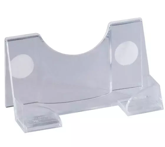 Tyylikäs pöydällä pidettävä käyntikorttiteline. Telineeseen mahtuu 50 kpl käyntikortteja. Maksimileveys 100 mm. Läpinäkyvää akryyliä