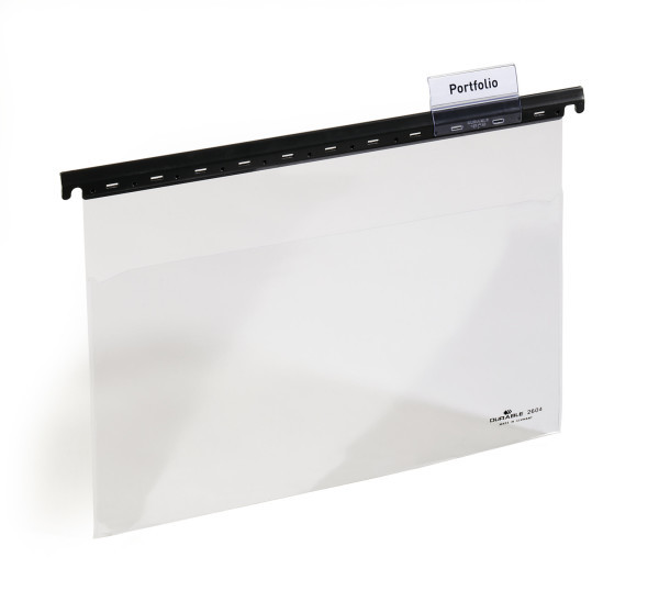 Pieniä määriä rei'ittämättömiä asiakirjoja. Valmistettu korkealaatuisesta läpinäkyvästä pehmeästä PVC: stä yläaukolla. Kulmavakaa vakaa muoviset ripustuskisko, 60 mm otsikkokieli, tyhjät insertit ja esipainetut AZ-insertit.