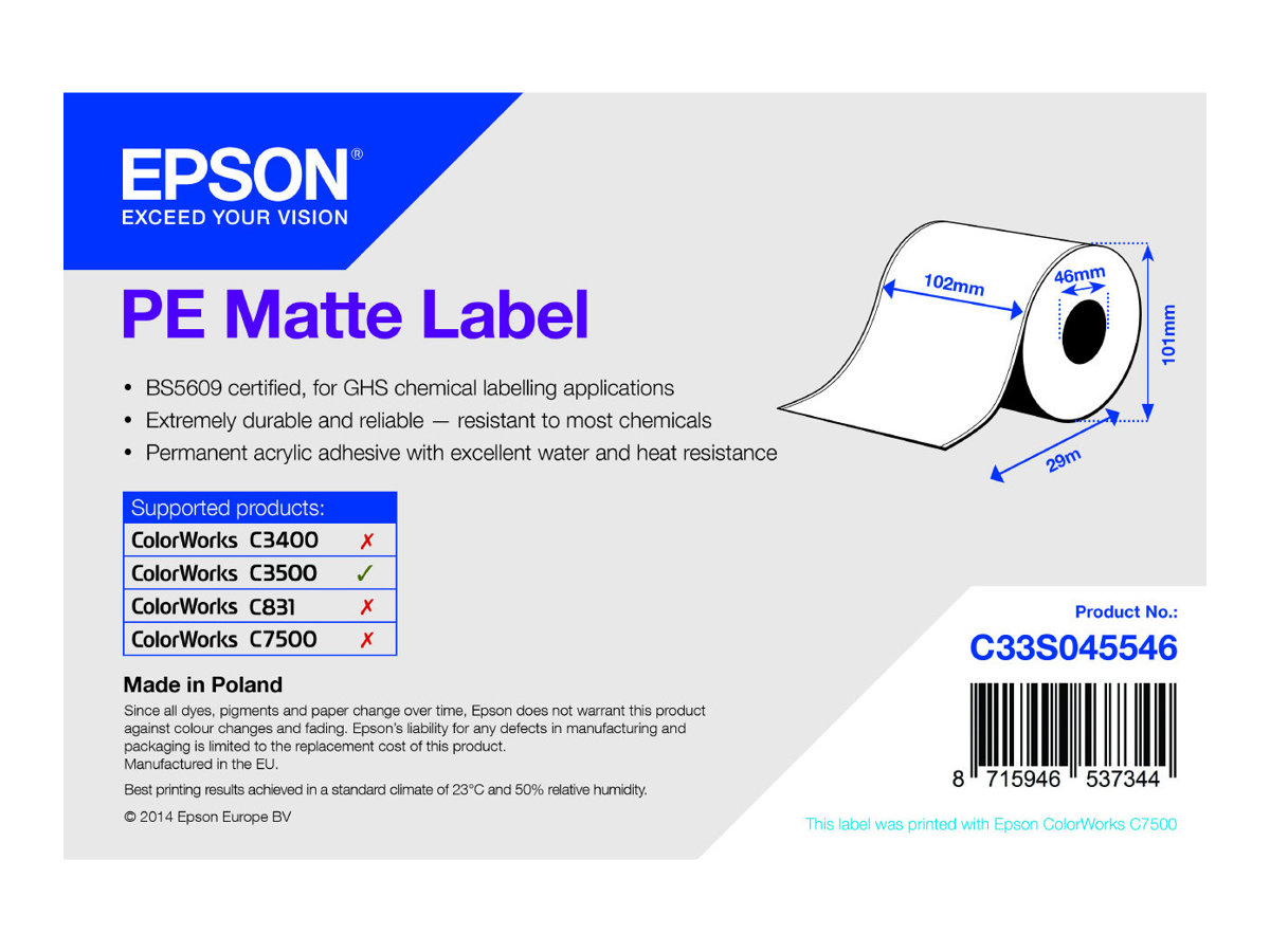 Epson PE etikettitarra (10,2 cm x 29 m) 1rulla