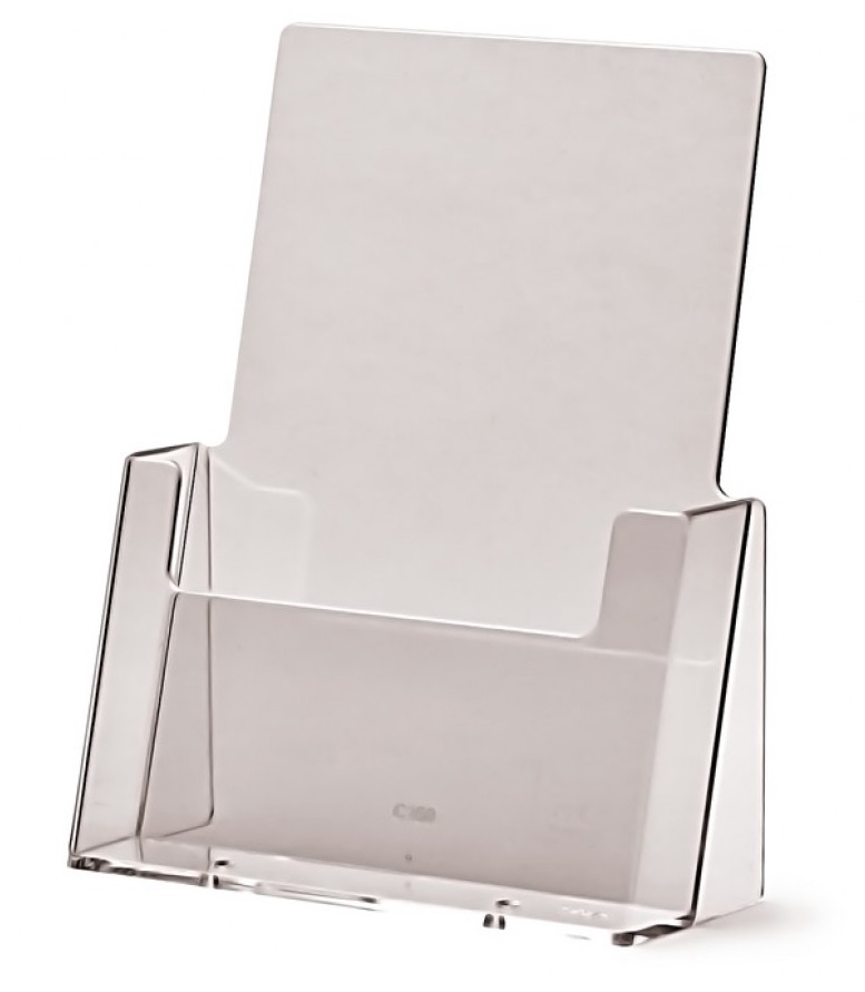 Kirkkaasta akryylistä valmistettu esitepidike.