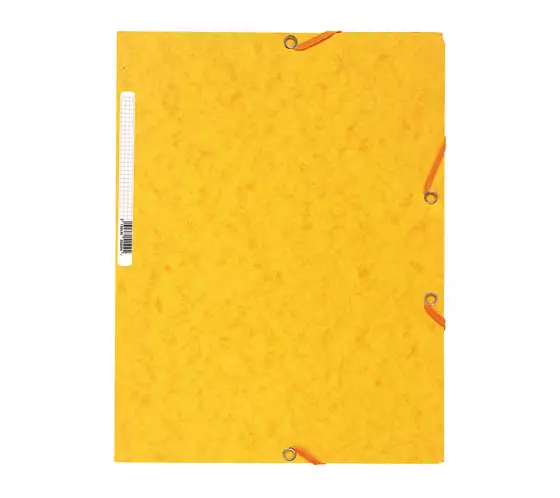 Erittäin tukeva ja laadukas kulmalukkokansio käänteillä. Kuminauhakiinnitys. Kolme läppää. Seläkkeessä tarraetiketti. Valmistettu 400g kartongista. Mitat 320 x 240 mm. Väri: keltainen. FSC-sertifioitu.