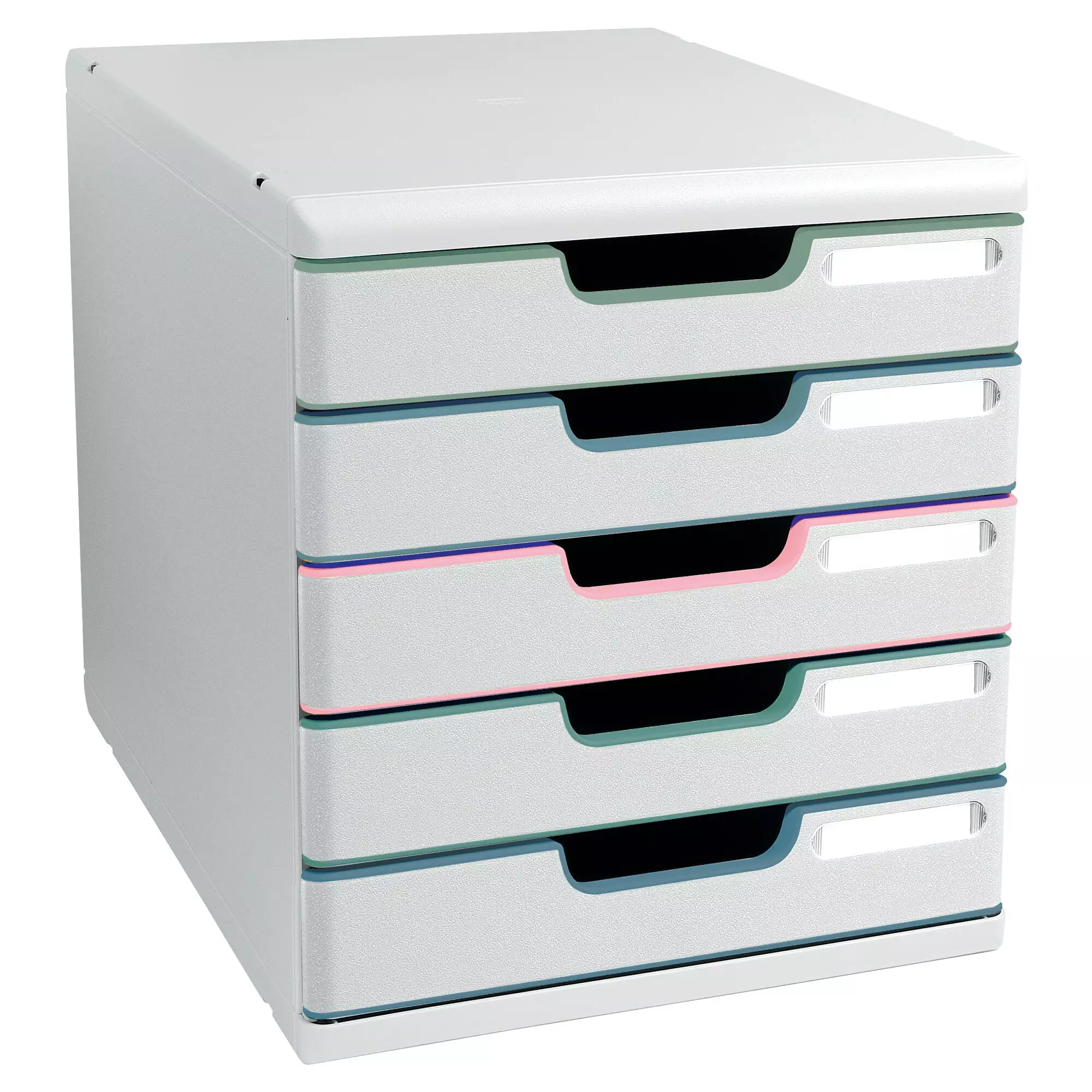 Exacompta Modulo 5-osainen vetolaatikosto yhdistää käytännöllisyyden ja modernin muotoilun, tarjoten tyylikkään ja toimivan säilytysratkaisun työ- ja toimistotiloihin. Laatikoiden hiljaisesti sulkeutuva mekanismi takaa miellyttävän käyttökokemuksen ja vähentää häiritseviä ääniä. Viisi erillistä lokeroa tarjoaa runsaasti säilytystilaa papereille, toimistotarvikkeille ja muille tarpeellisille esineille, pitäen työtilan siistinä ja järjestyksessä.