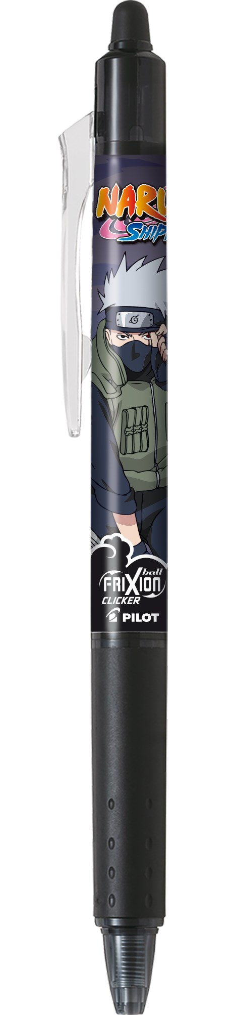 FriXion Clicker - Kakashi Voit nyt hankkia FriXion-kynän Naruto-erikoisversiona. 250 miljoonalla myydyllä kirjallaan, yli 1 000 tv-jaksollaan, 11 elokuvallaan ja 65 tietokonepelillään Naruto on yksi maailman suosituimmista manga-lisensseistä. Pelkästään yli 130 yksinoikeudella Euroopassa olevan lisenssinhaltijan lisäksi suosittu FriXion-kynä on nyt saatavana myös Naruto-lisenssinhaltijan kanssa. PILOTin sisäänvedettävät ja täysin pyyhittävät rullapallokynät