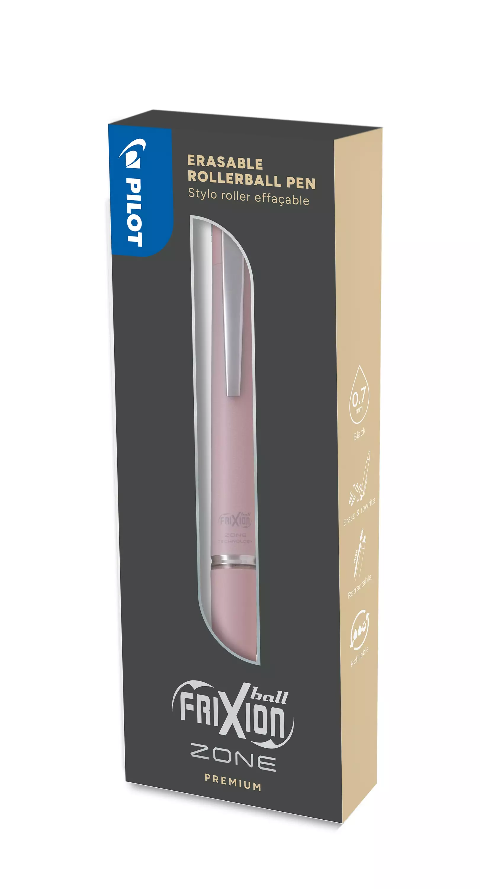 Suosittu pyyhittävä Frixion on nyt saatavana ensiluokkaisella mustevaihtoehdolla, joka tarjoaa tummemman musteen ja täyttömäärän suuremmalla mustekapasiteetilla, mikä ratkaisee kaksi Frixion Ball -sarjan yleisesti pyydettyä parannusominaisuutta. Myös kynärungot ovat saaneet muutaman päivityksen. Niissä on vakauttava kynän kärjen "pidike" vakaata pitoa varten ja hiljaisempi koputusmekanismi. FriXion Zone on vakiona mustalla musteella. Sinistä mustetta voi ostaa erikseen. 0,7 mm tynnyrin värillä vaaleanpunainen. Musteen väri musta Premium Frixion Black -muste on syvempää kuin alkuperäinen Frixion-muste Premium Frixion -musteen täyttöpakkaus sisältää 40 % enemmän kuin alkuperäiset Frixion-täyttöpakkaukset Premium Ink on uudelleentäytettävä Mukava ote.