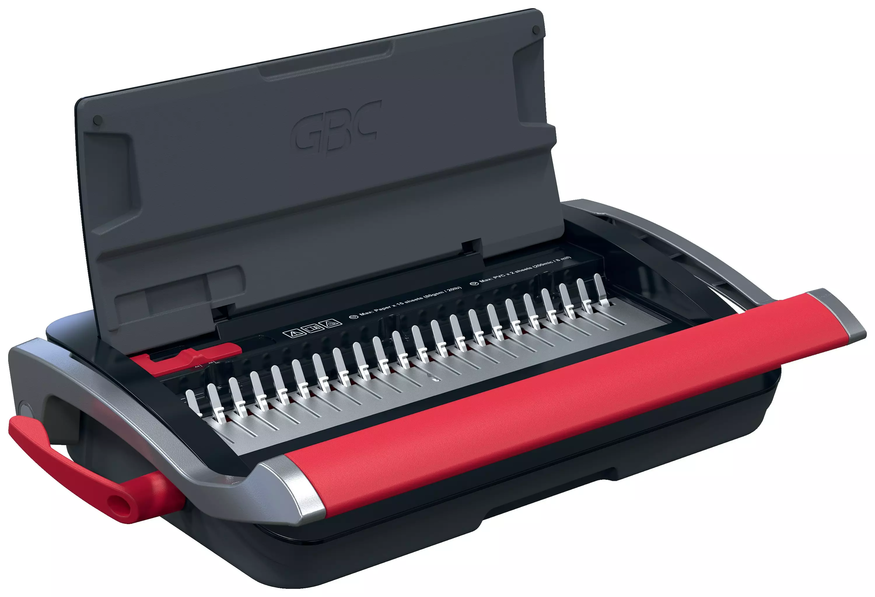 GBC WireBind CB15 Kampasidontalaite muovikammoille.CombBind® CB15 on luotettava ja kompakti manuaalinen kampasidontalaite, joka on täydellinen henkilökohtaiseen käyttöön tai pieneen toimistoon, jossa on vähän volyymia. Se lävistää vaivattomasti jopa 15 arkkia 80 g/m²:n paperia ja voi sitoa jopa 195 arkkia kerralla käyttämällä 19 mm:n piikkejä Sen kevyt, tilaa säästävä muotoilu varmistaa, että sitä voidaan käyttää missä tahansa, milloin tahansa ja helposti varastoida, kun sitä ei käytetä. Käyttömukavuuden lisäämiseksi se sisältää leikkuulokeron helppoon hävittämiseen ja kätevän säilytyslokeron. Väri musta ja hopea. - Sitoo jopa 195 A5/A4-arkkia (80 gsm) kerrallaan 19 mm kampaa käyttämällä. - Lävistää jopa 15 arkkia kerralla (80 gsm) - Monipuolinen sidonta: sido helposti A5-asiakirjat A5-kammoilla ja A4-muotoiset sivut A4-kammoilla - Manuaalinen kaksikahvainen lävistys takaa sujuvan sidontakokemuksen pienellä vaivalla. - Sivumarginaalin säätö takaa tarkan kohdistuksen ja yhdenmukaiset sidontatulokset. - Kiinteä marginaalisyvyys johdonmukaiseen ja korkealaatuiseen sidontaan. - Tukevat kumijalata varmistavat vakaan ja turvallisen asennon. -Kätevä leikkausalusta ja sisäänrakennettu säilytyslokero ylläpitää siisteyttä. - Kevyt ja kompakti muotoilu helpottaa siirtämistä ja kätevää säilytystä