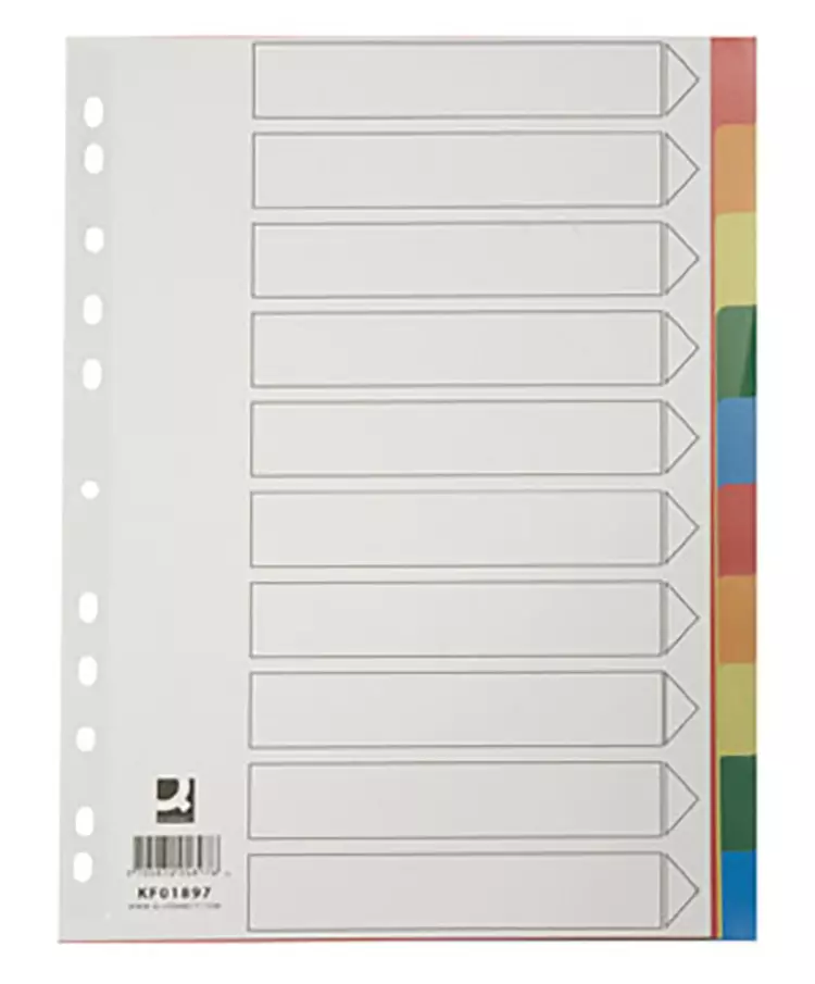 Q-Connect hakemistossa on värilliset muoviset (125 mic) lehdet. Valkoinen etusivu. 10-osainen.