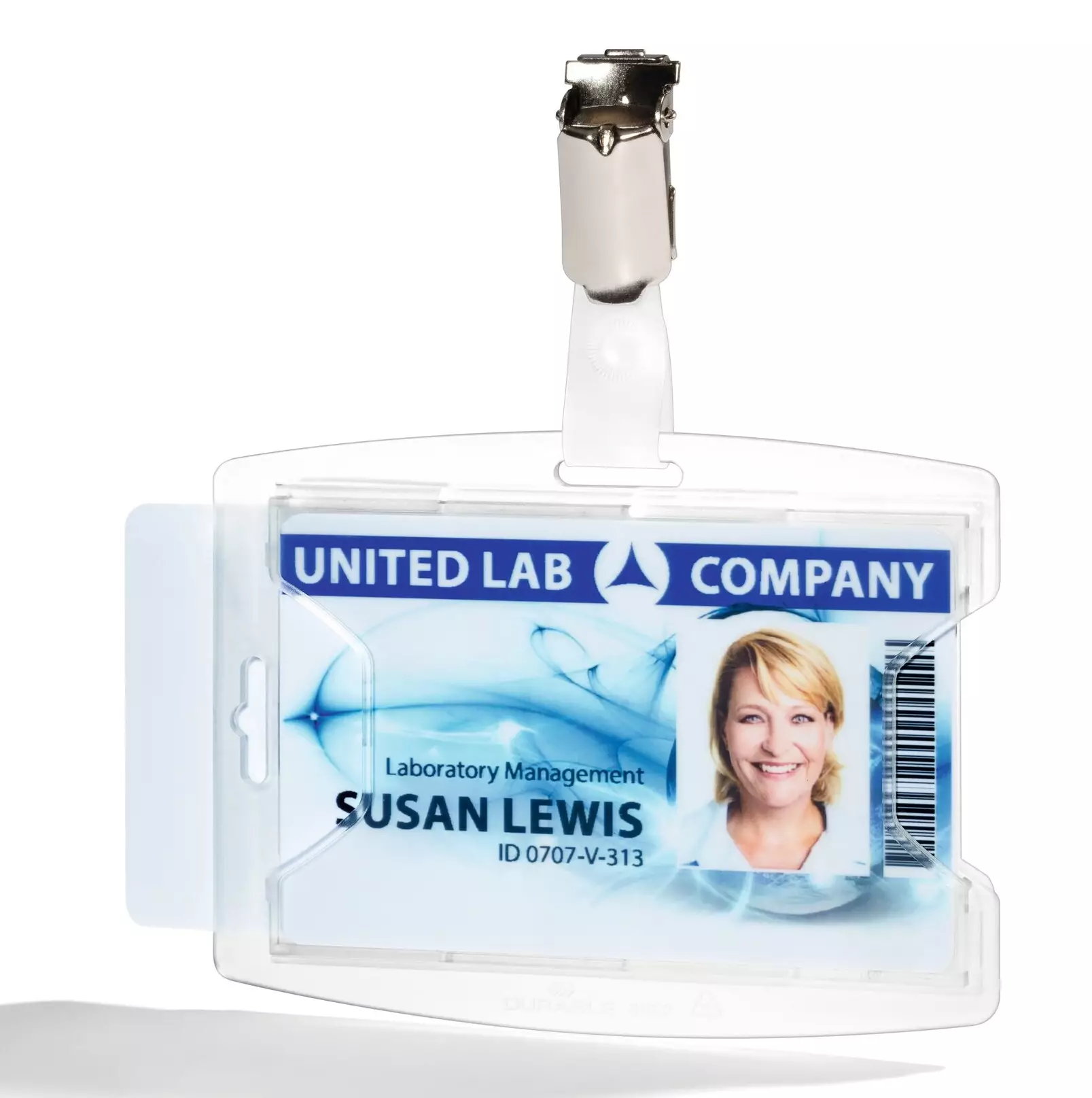 Henkilökorttikotelo, joka on valmistettu 70 % kierrätetystä polypropeenista ja jossa on klipsi kahdelle kortille. Ajaton muotoilu ja vähäinen materiaalien käyttö. Sivussa syvennys kortin helppoa poistamista varten. Pyörivällä klipsikiinnityksellä. Voidaan yhdistää ketjuun, tekstiiliseen kaulanauhaan tai merkkikelaan. Korttikoteloa voidaan käyttää joko pysty- tai vaaka-asennossa. Sisämitat: 54 x 85 mm (K x L).