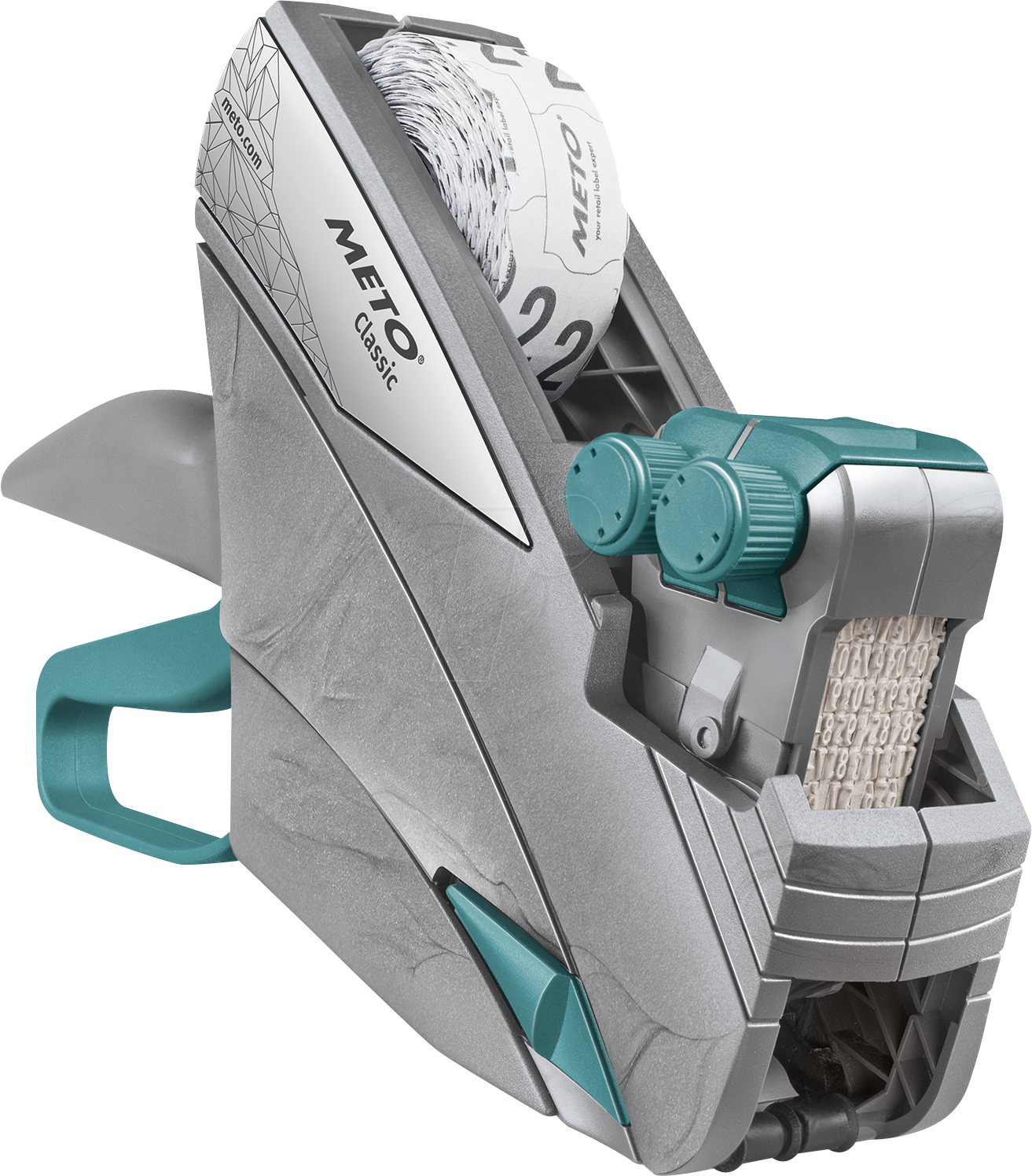 METO:n 2-linjainen käsihintapistooli Classic M, 30007667, on klassinen hintapistooli, jolla on pitkä käyttöikä ja korkea luotettavuus. Se kirjoittaa enintään 16 merkkiä 26 x 16 mm:n tarroille.