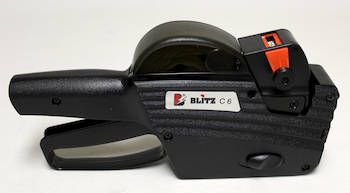 HINNOITELUKONE BLITZ C6 1-rivinen käyttää etikettikokoa 26x12mm löytyy kovallla ja irroitettavalla liimataustalla olevia hinnoittelutarroja vaihdettava väritela Blitz hinnoittelijat ovat helppokäyttöisiä.