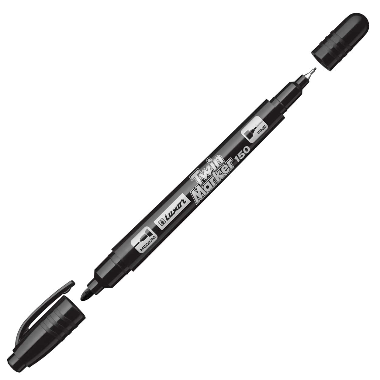 Merkintäkynä LUXOR Twin Marker 150. Soveltuu lähes kaikille pinnoille. Haalistumista ja vedenkestävä muste. Vesipohjainen muste. Kuivuu nopeasti. Ksyleeniton ja tolueeniton. Jäljen leveys: 0,7 mm ja 1 mm.